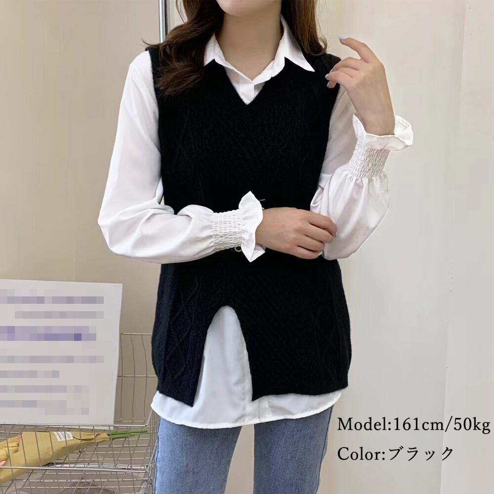 襟付きシャツ 長袖 ニットチョッキ 春秋冬 重ね着