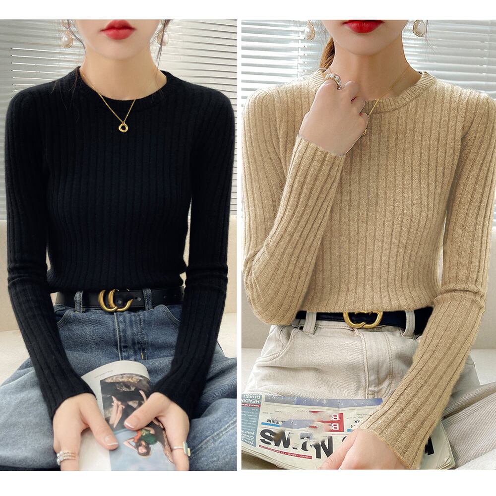 クルーネック ニットカットソー ベーシック 薄手ニット 着回し ニットプルオーバー 柔らかい ニットインナー 無地全9色