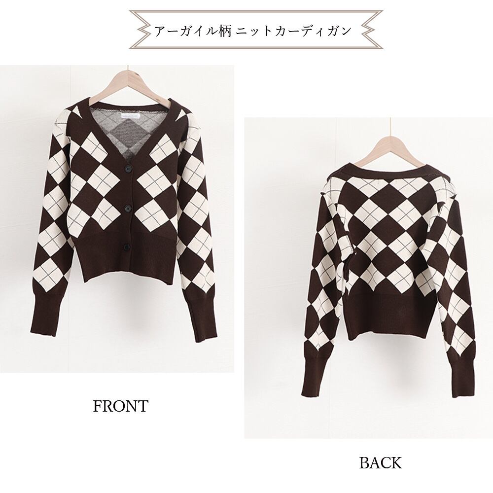 レトロな印象のアーガイルチェック柄が目を惹くニットカーディガン