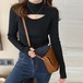 【日本倉庫即納】 ニットトップス 胸開き プチハイネック