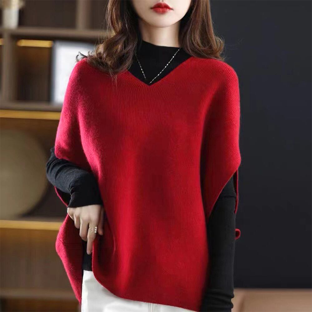 無地ニットチョッキ オフィスカジュアル 着やせニット春秋冬