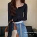 首回りをすっきり見せてくれるキーネックトップスです