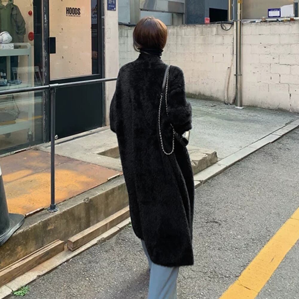 【日本倉庫即納】 シャギーロングニットカーディガン 韓国風