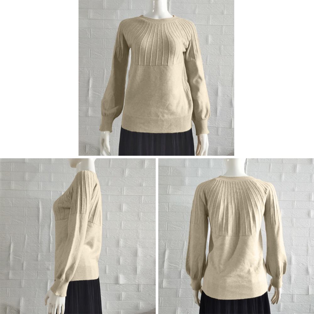【日本倉庫即納】 求心編みニットトップスパフスリーブ 韓国