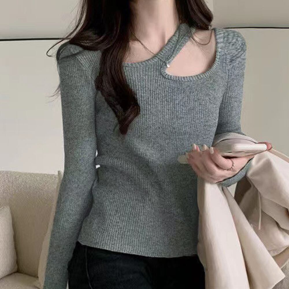 カットアウト ニットプルオーバー タイトニット 普段着ニットセーター カジュアルニットウエア 無地ニットソー