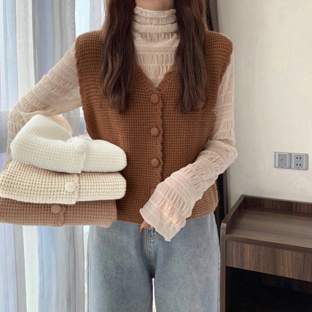 ニットトップス 前開き 韓国ファッション ボタン付き 重ね着 コーディネート かわいい カジュアル レイヤード 洋服