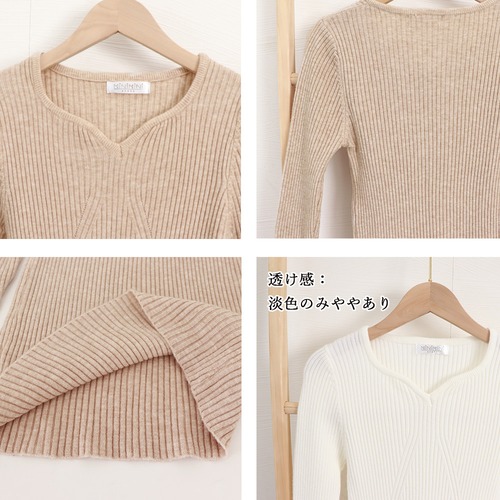 ハートネックで首元がすっきり綺麗に見える長袖タイトニットトップス