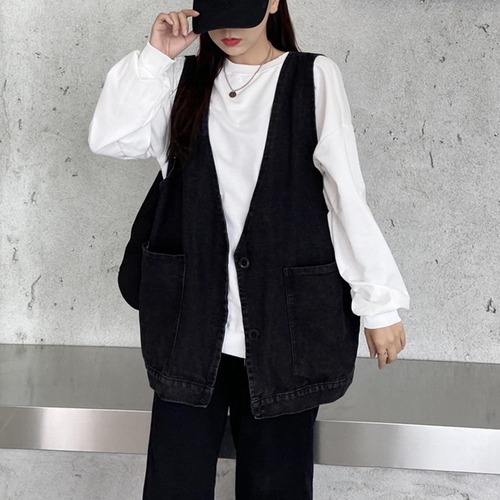 デニムチョッキ おしゃれ 体型カバー ジージャン ポケット カジュアル 韓国ファッション ライトアウター ノースリーブ