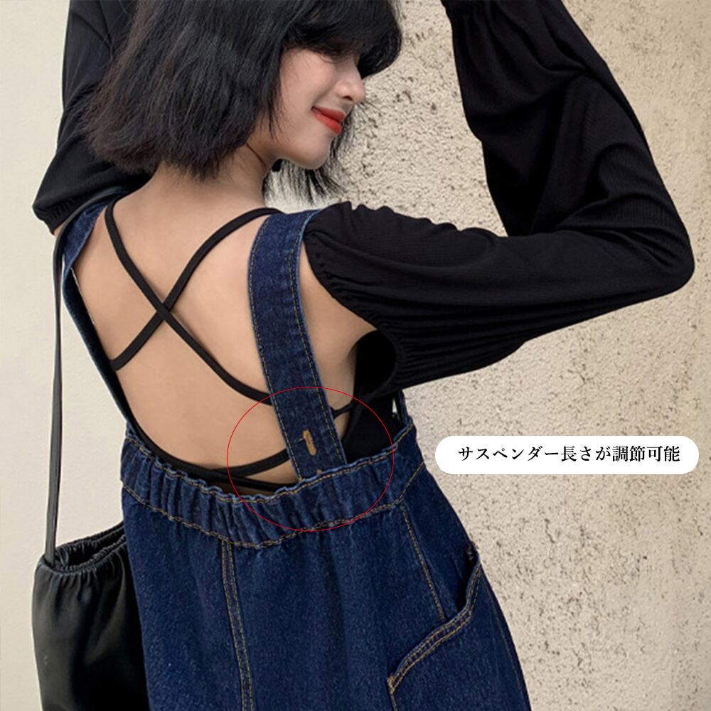 カジュアル つなぎ デニムパンツ 秋冬 ゆったり オールインワン ジーンズ 体型カバー 可愛い 吊りワイドパンツ 重ね着