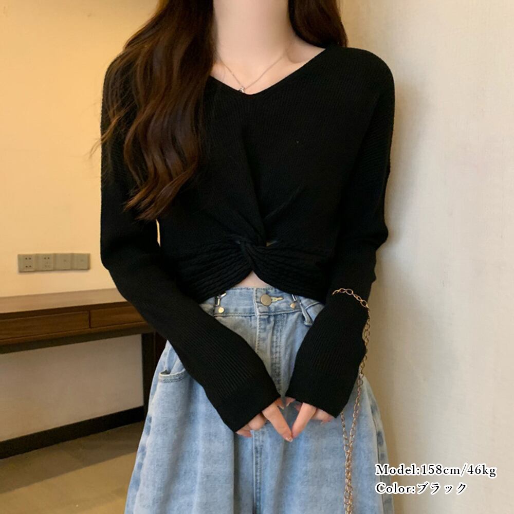 【日本倉庫即納】 フロントツイスト ニットプルオーバー秋服