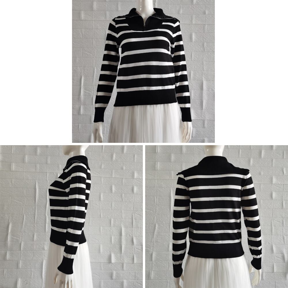 【日本倉庫即納】 ハーフジップボーダー ニットプルオーバー