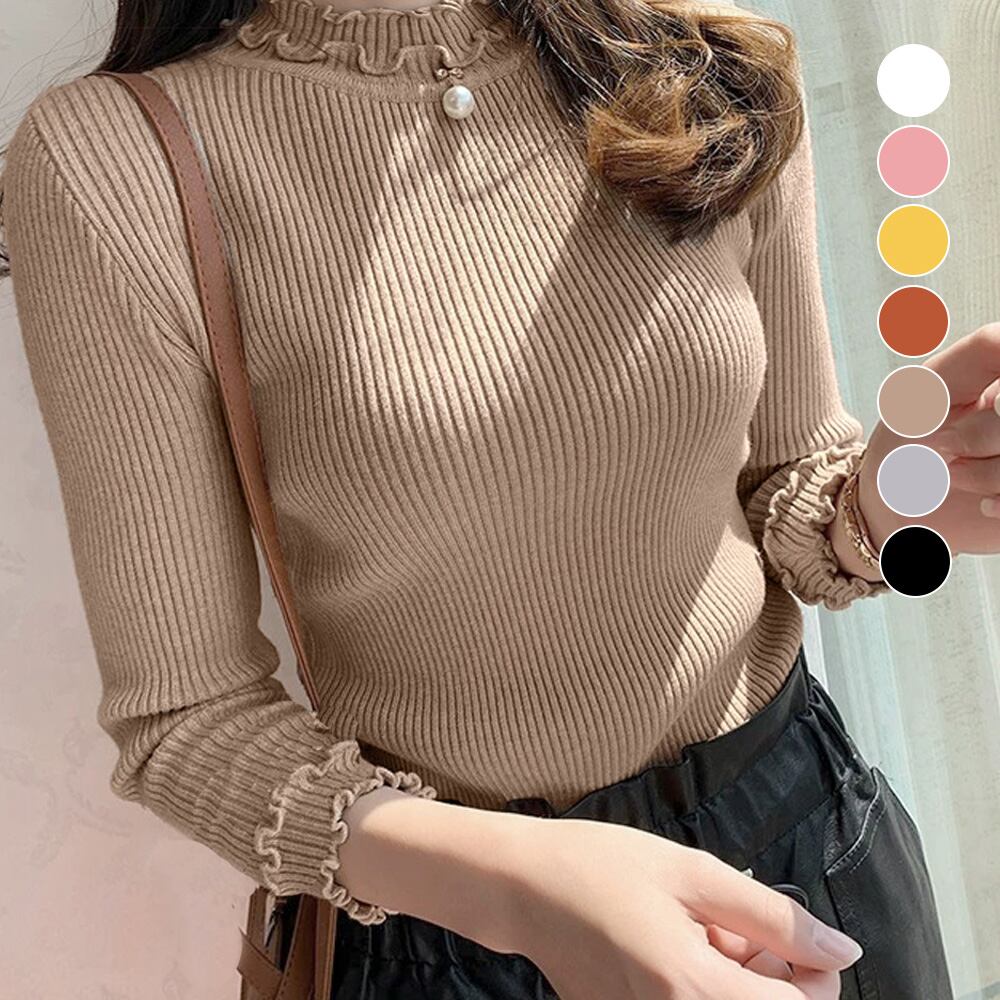 きれいめリブニット 新作着やせセーター 大人可愛いトップス
