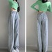 【日本倉庫即納】 デニム ワイドパンツ ハイウエスト 脚長