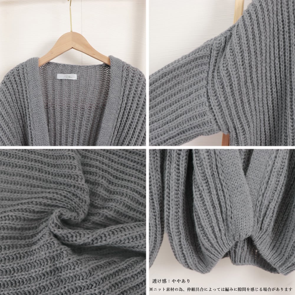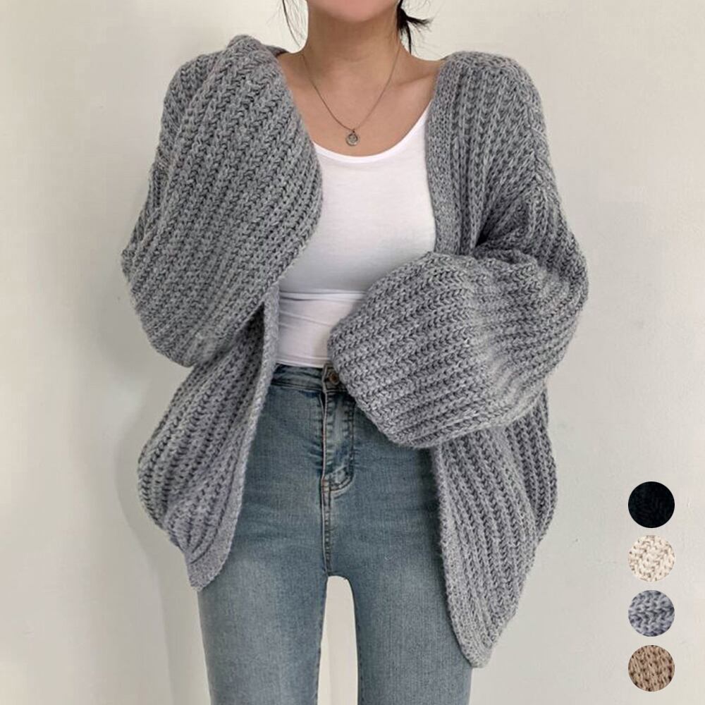 カーディガン 韓国風 ゆるニットトップス 体型カバー ボリューム袖 長袖 ニットアウター 羽織り 春秋服 大人カジュアル