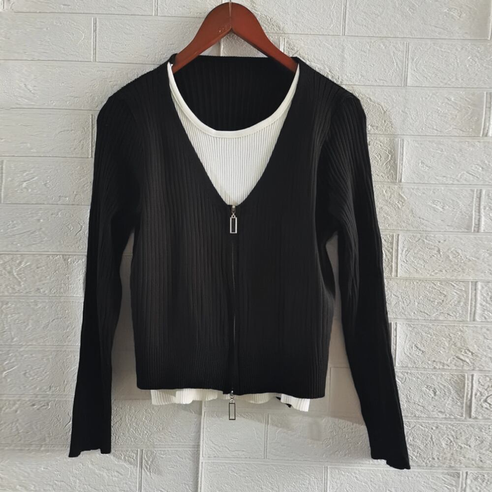 【日本倉庫即納】 レイヤード風ニットトップス バイカラー