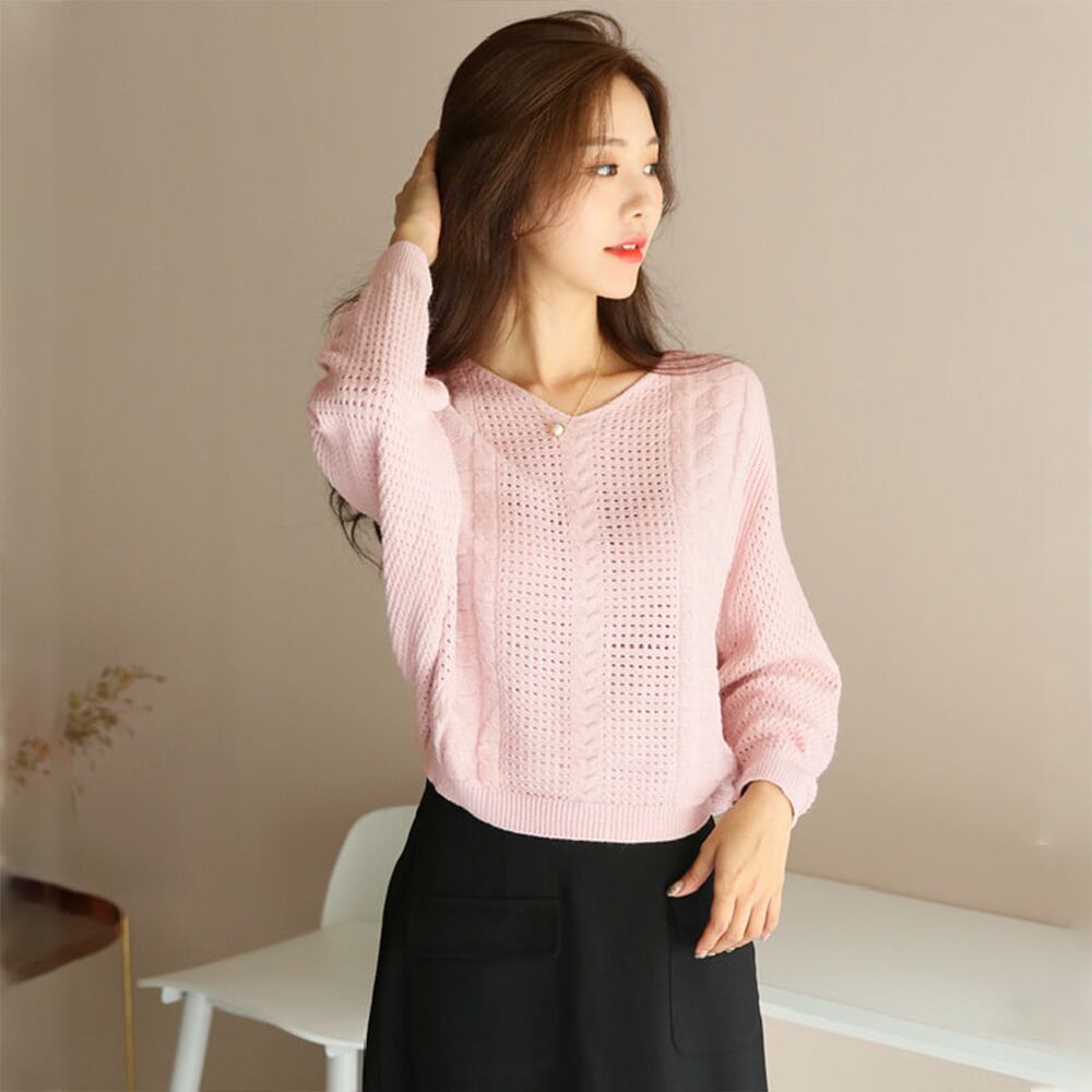 ドルマンニットニット きれいめ 透かし編み Vネック 柔らかい着やせニットソー可愛いフェミニンベーシックお洒落レイヤード