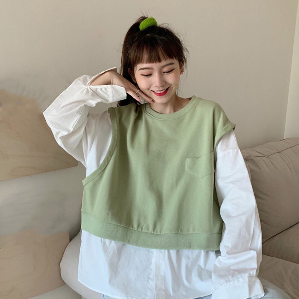 【日本倉庫即納】 レイヤード風 ドッキングブラウス 韓国風