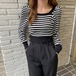 ボーダーと無地2タイプで展開、長袖スクエアネックニット