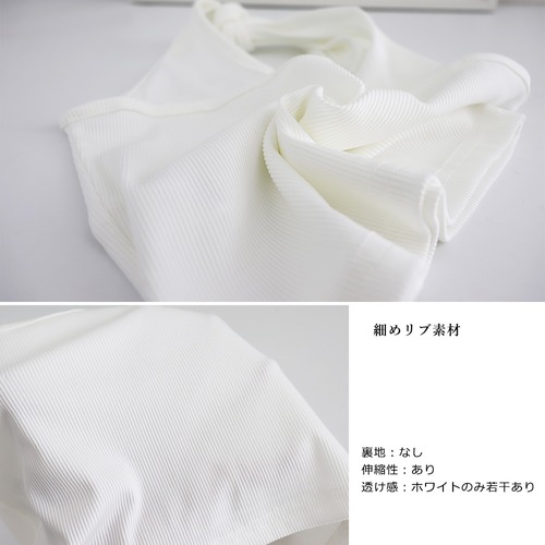 ストレッチの利いた縦目のリブ素材で、ほどよいフィット感がありながらストレスフリーな着心地です