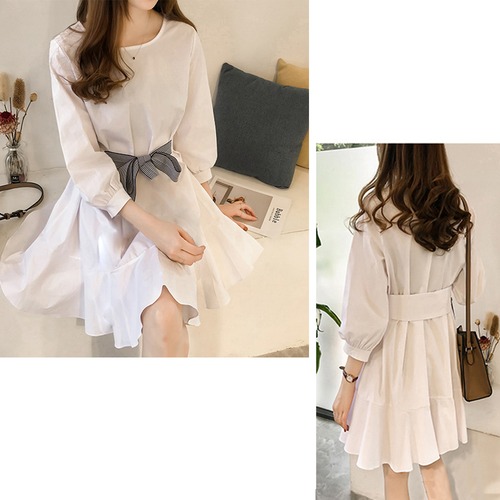 韓国ファッション 体型カバーワンピ ショート無地ワンピ