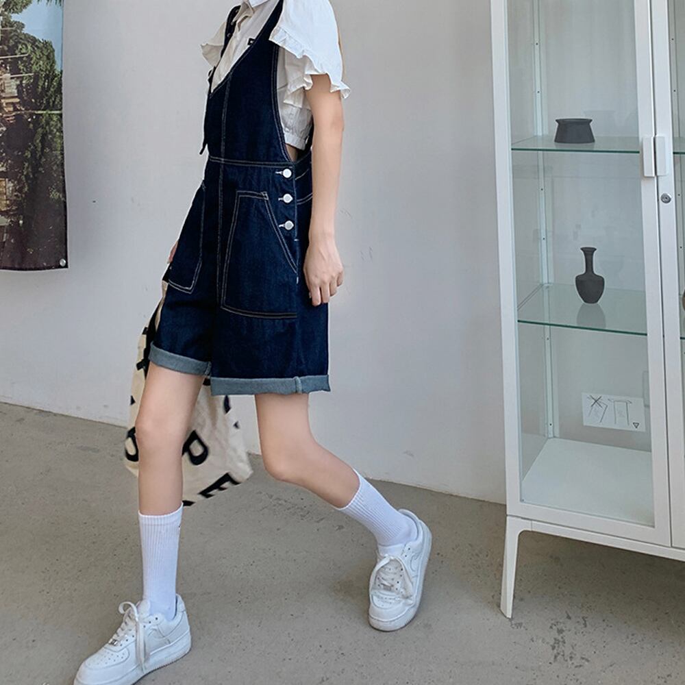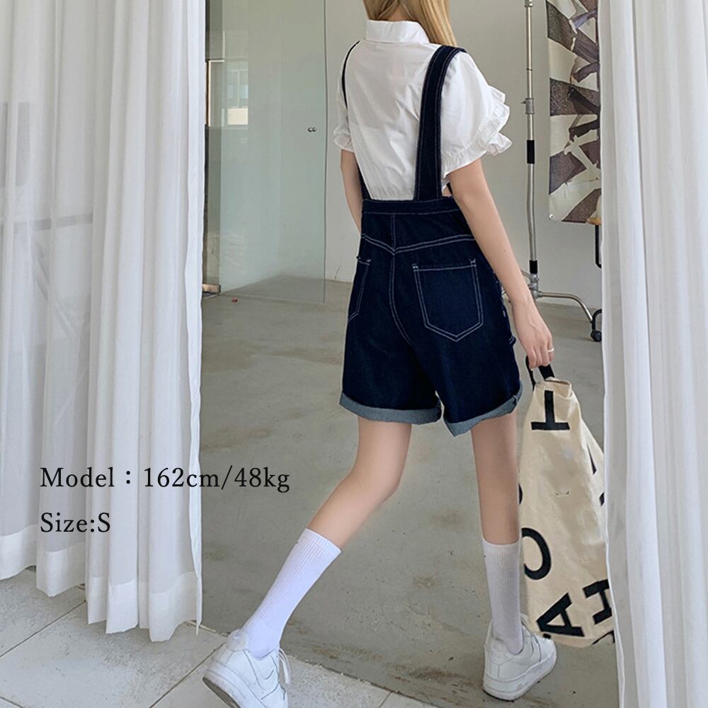 オールインワン 無地 デニムパンツ ゆったり ショーパンサロペット 体型カバー オーバーオール