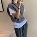 ノースリーブニット カジュアル 韓国風 やや短め 春秋冬