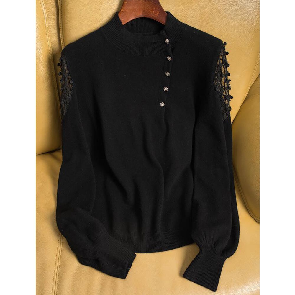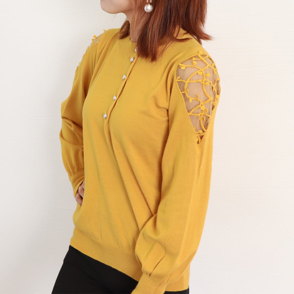 メッシュレース切り替えで程よくゆるシルエットのニットトップス