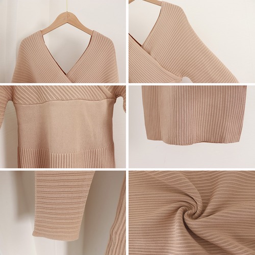 【日本倉庫即納】 カシュクールニットワンピース 韓国風