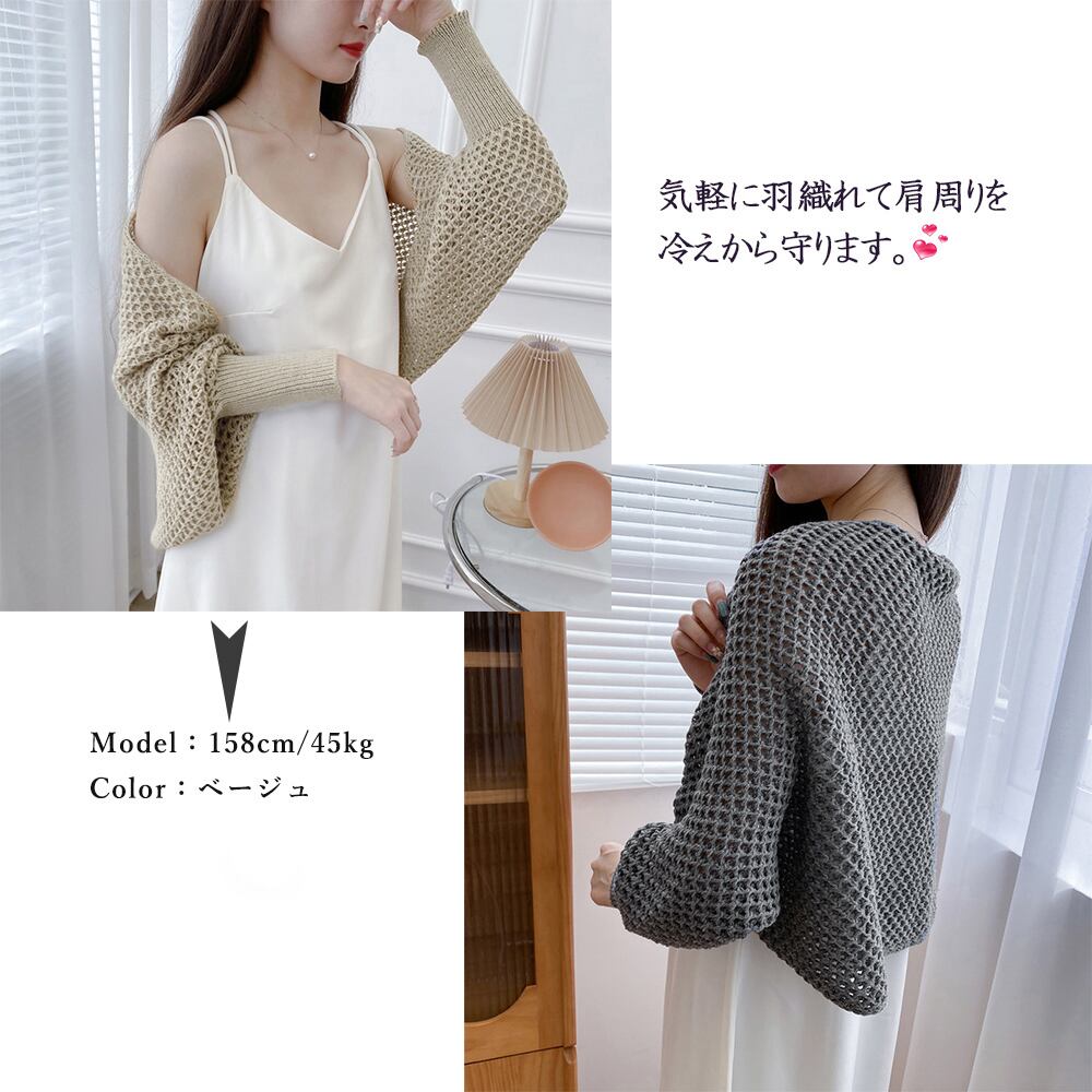 ニット羽織り ボレロカーデ 透かし編み ニットトップス 無地 大人カジュアル ライトアウター 冷房対策 長袖 春秋 韓国
