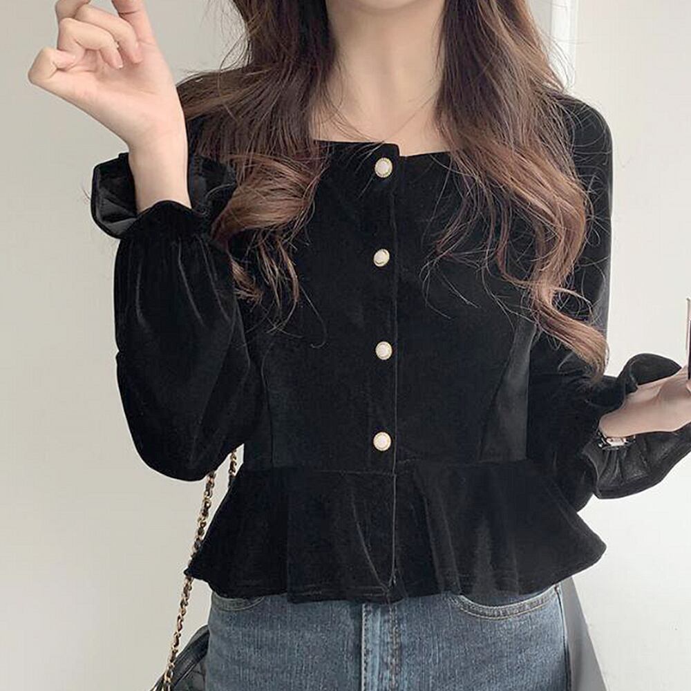 【日本倉庫即納】 ベルベット ブラウス レディース長袖 黒