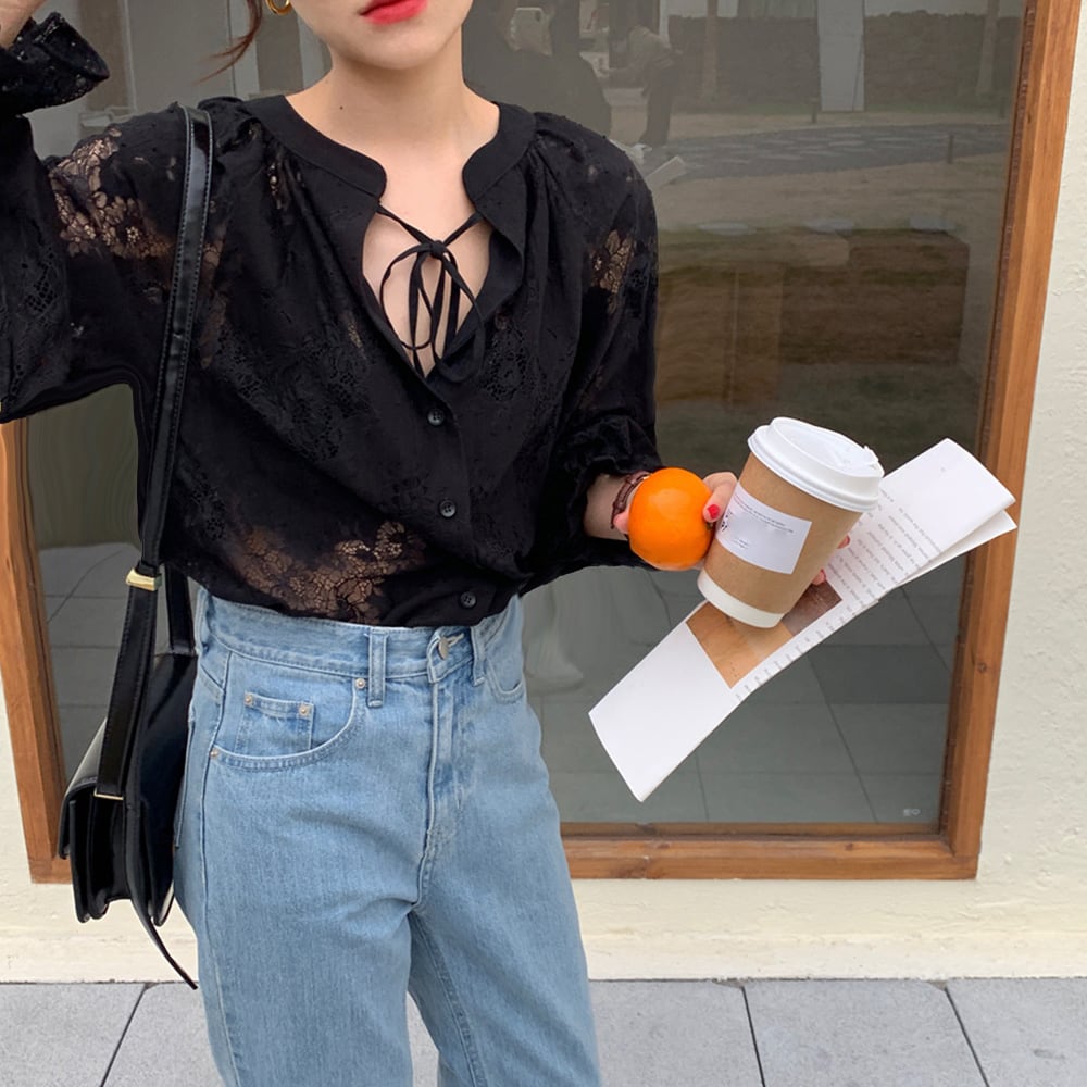 シースルーの透け感が上品でクラシカルムード漂うレースブラウス