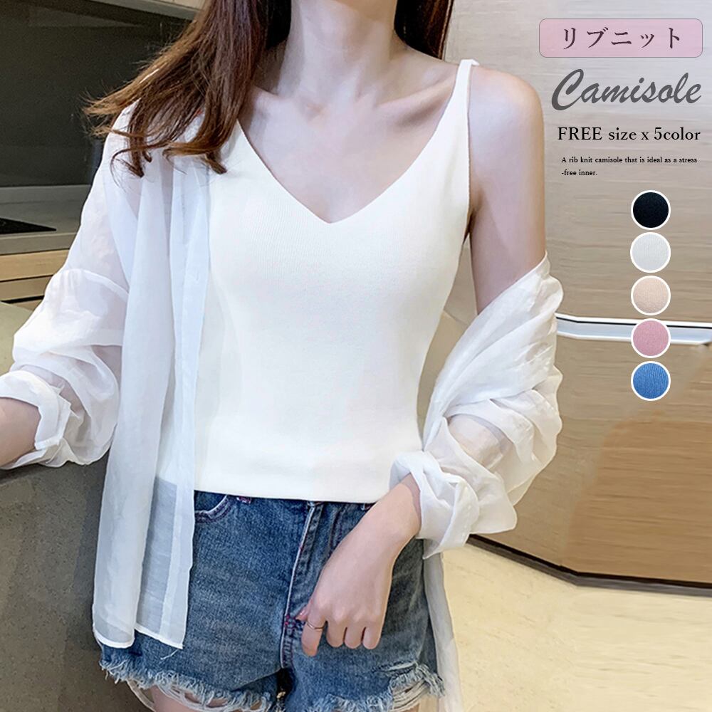 【日本倉庫即納】 Vネックリブニットキャミソール 韓国風