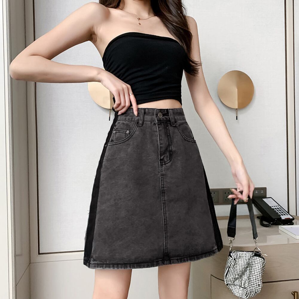 可愛い ジーンズスカート ショート丈 台形スカート ハイウエスト 膝上丈 Aライン ハーフスカート夏秋春 韓国 きれいめ