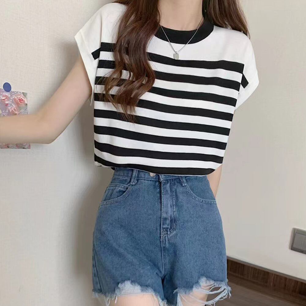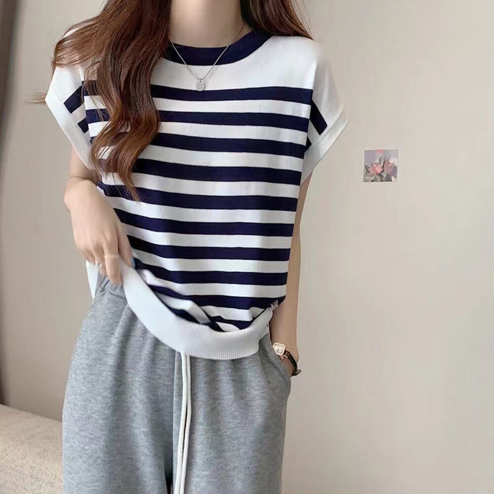 【日本倉庫即納】 フレンチスリーブサマーニット ボーダー柄