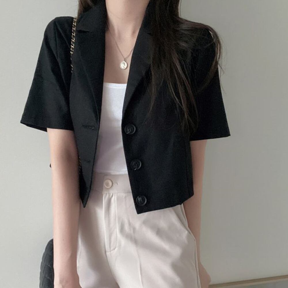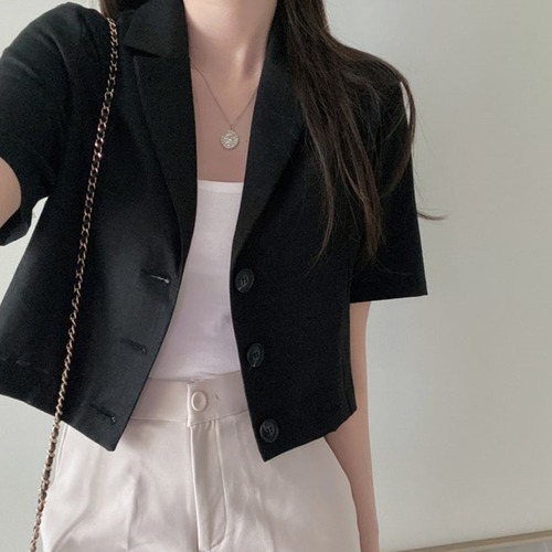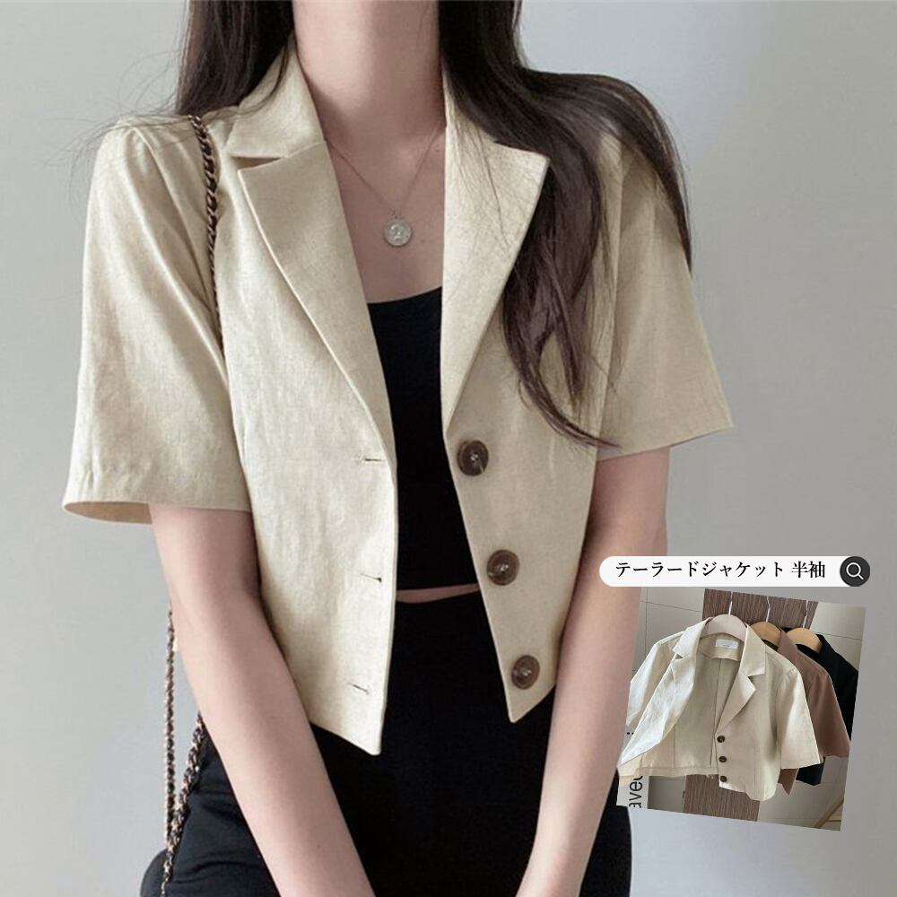 【日本倉庫即納】 テーラードジャケット 半袖 クロップド丈
