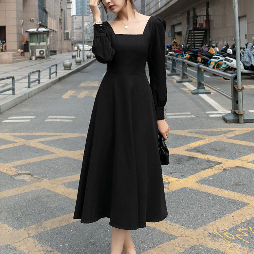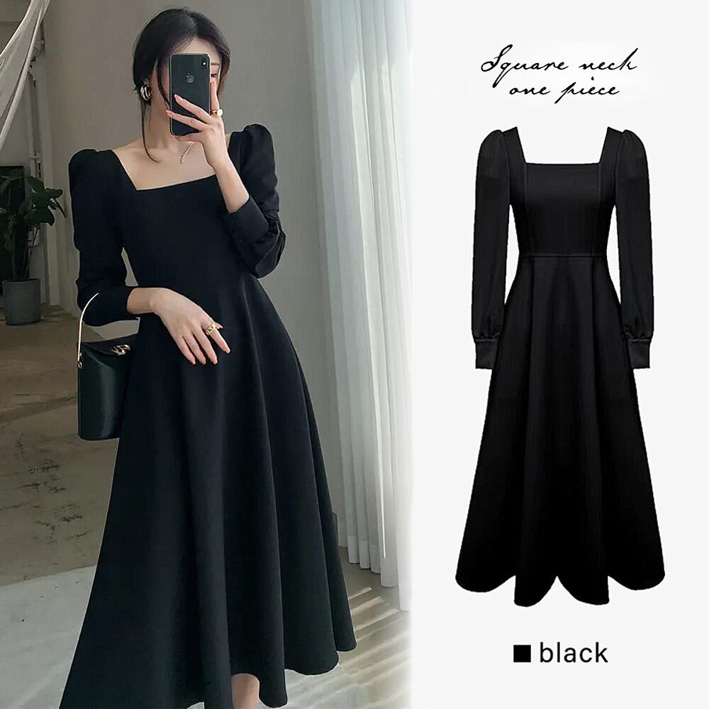 【日本倉庫即納】 スクエアネック ワンピース レディース黒