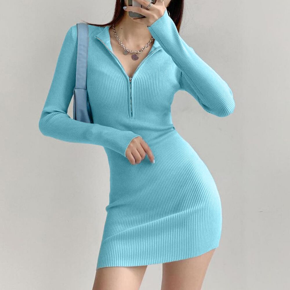 タイトワンピース 長袖ワンピース ショート丈ワンピ