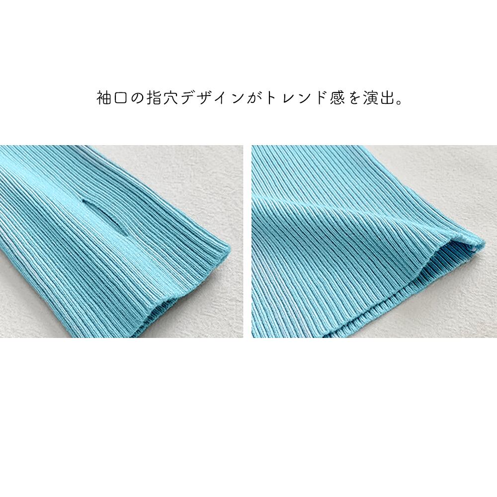袖口の指穴デザインがトレンド感を演出します。