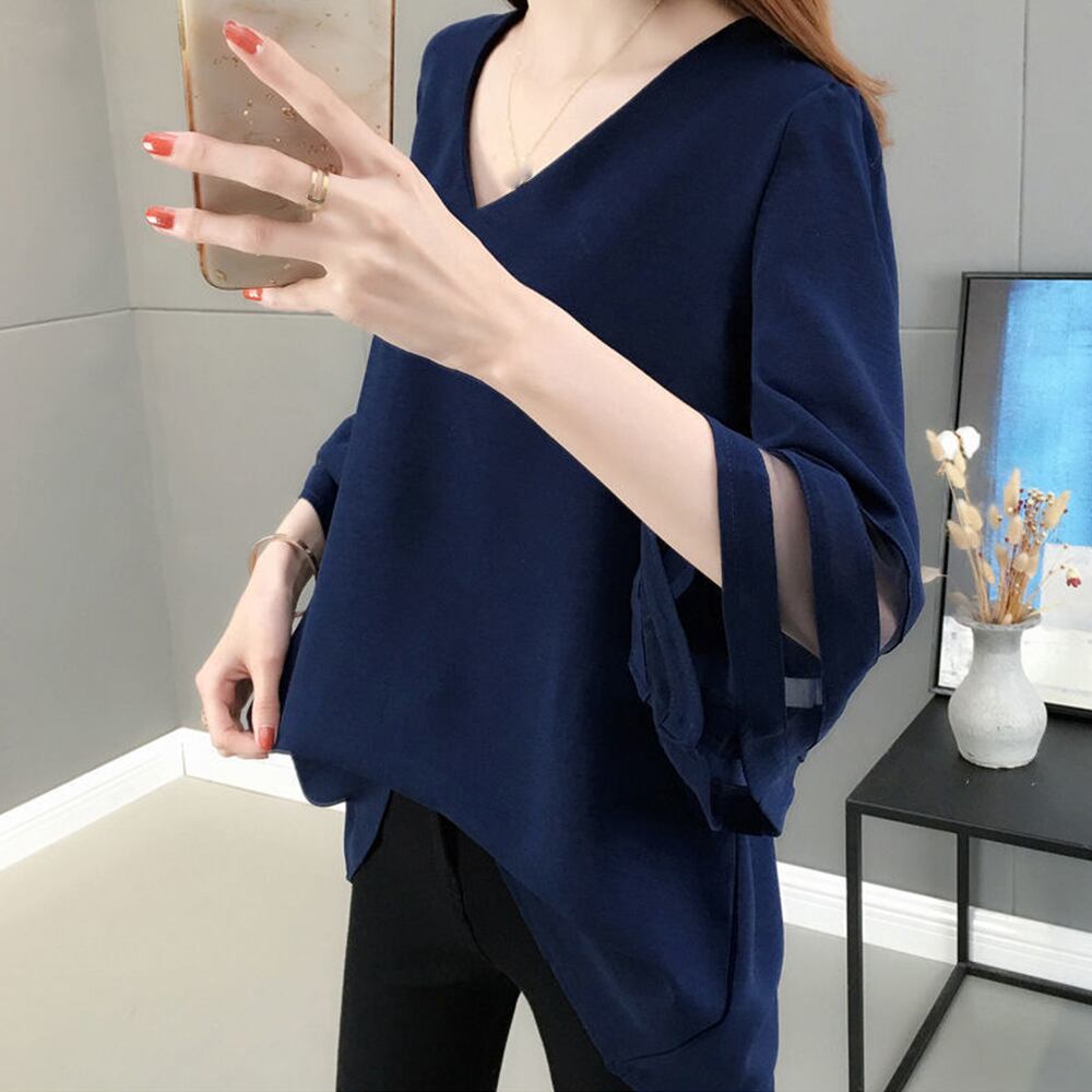 【日本倉庫即納】 Vネック シャツブラウス レディース夏服