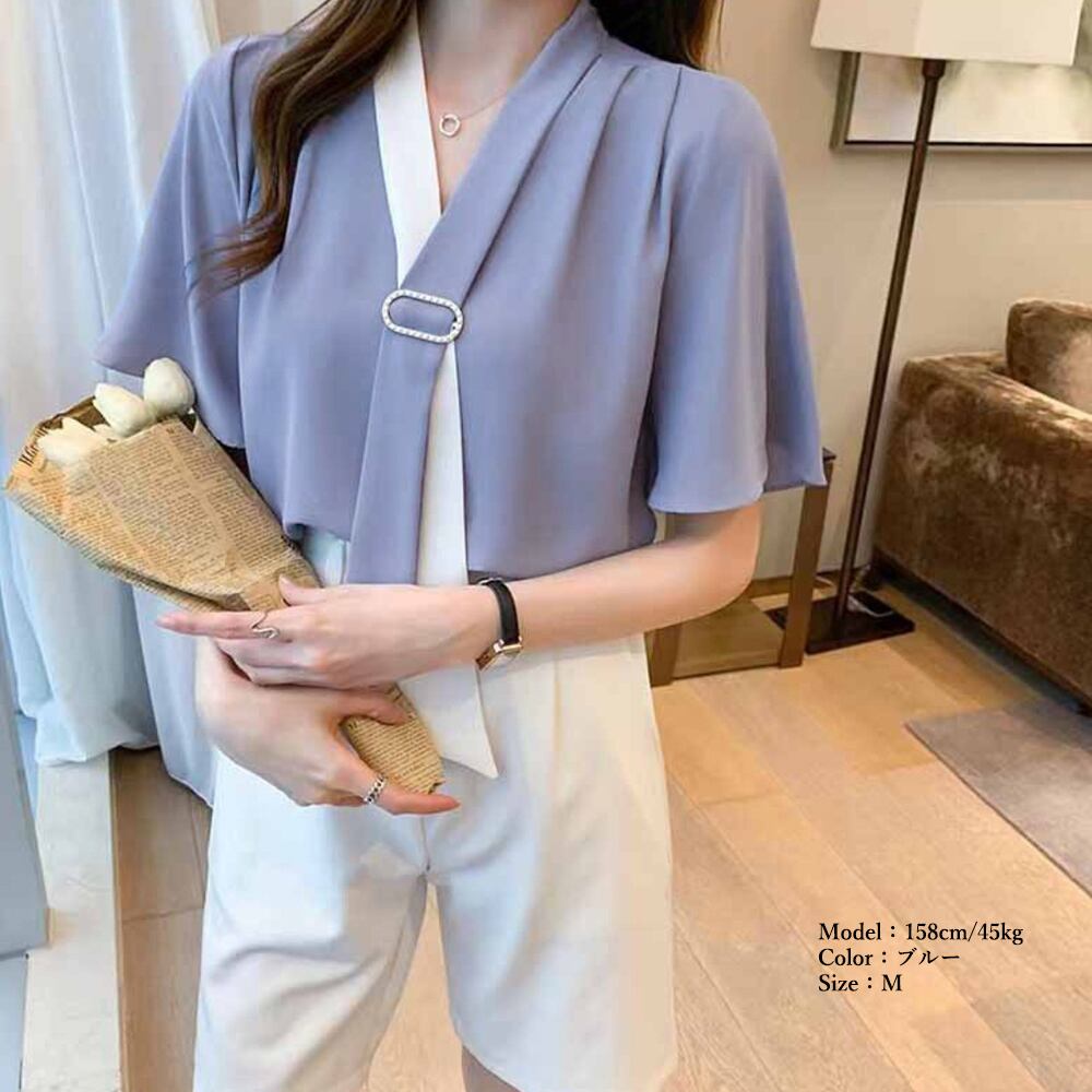 オフィスカジュアル シャツブラウス 大人女性 ゆったり とろみシャツ 通勤通学 薄手半袖ブラウス 20代 30代 40代