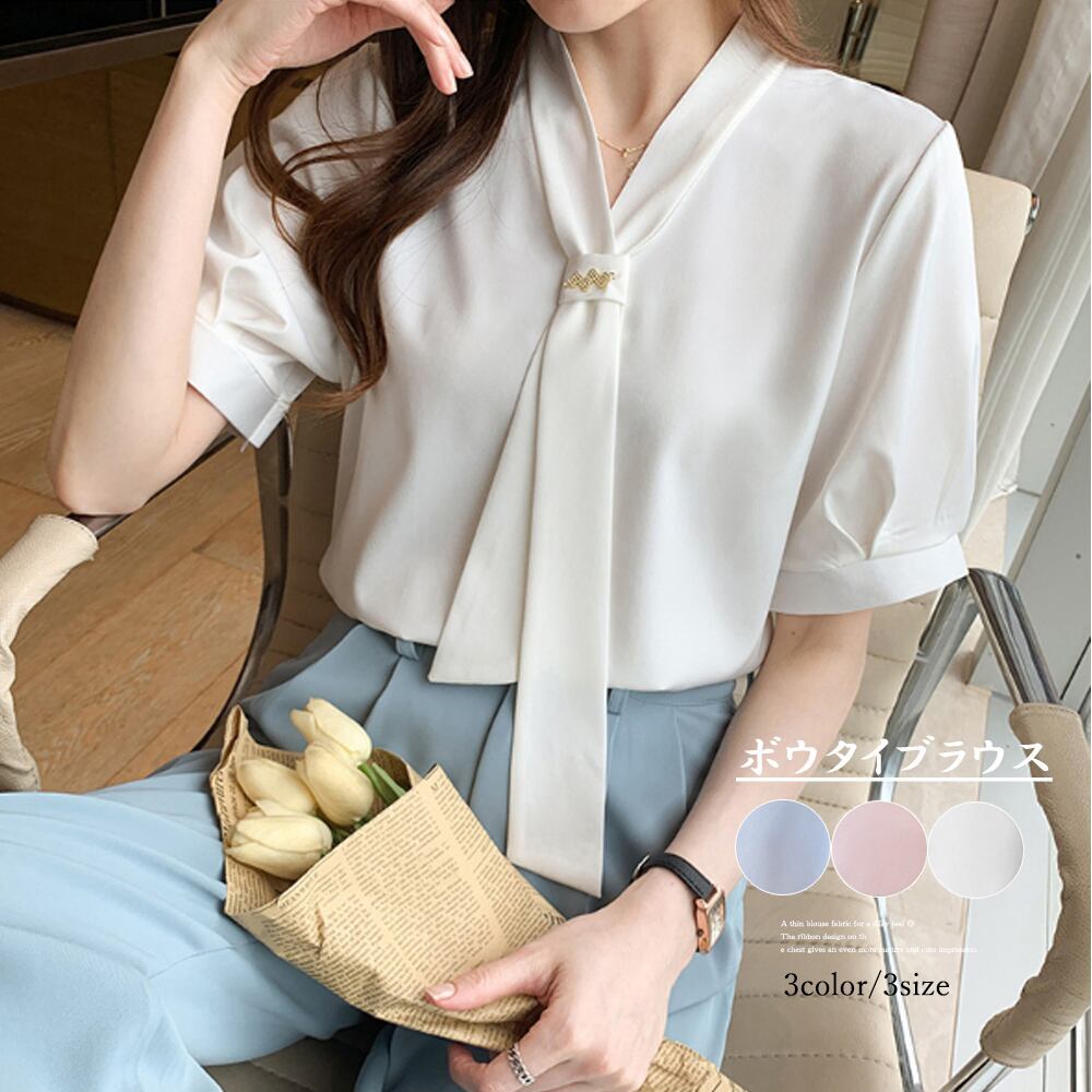 オフィス ブラウス 夏服トップス韓国風 リボンブラウス上品