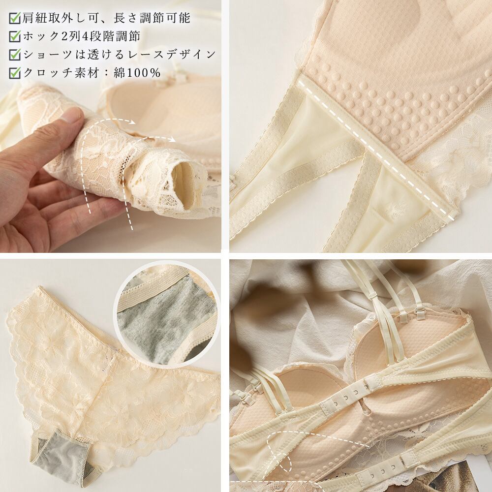 ブラジャーショーツ上下セット 盛れる 谷間 背中見せ ワイヤレスブラ 可愛い 韓国風 美胸 透け透け ショーツ お泊り