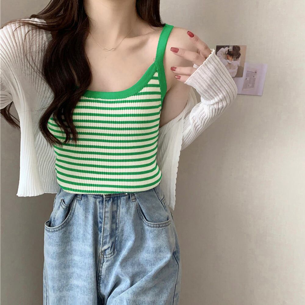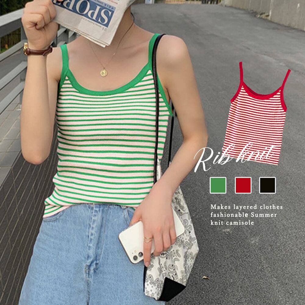 【日本倉庫即納】 ボーダー柄 ニットキャミソールバイカラー