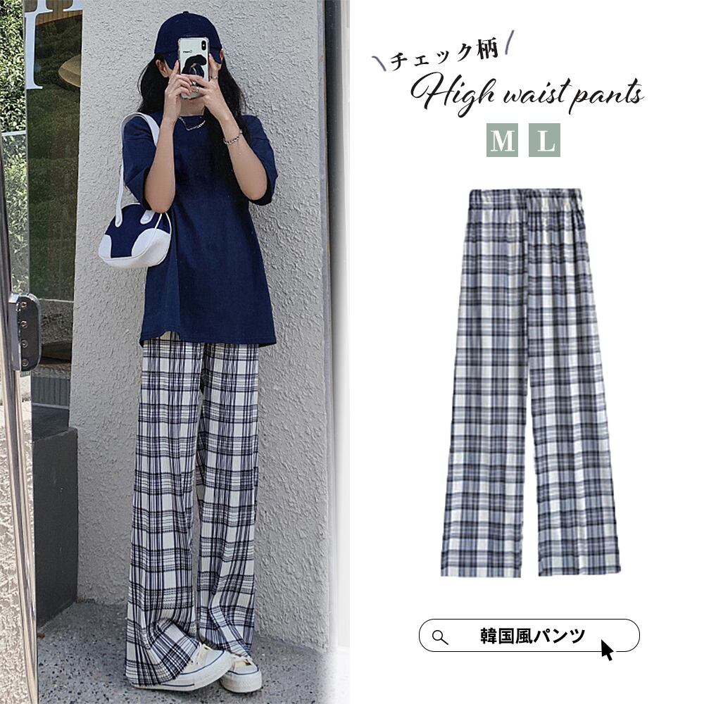 【日本倉庫即納】 セミワイドパンツ チェック柄 春夏秋