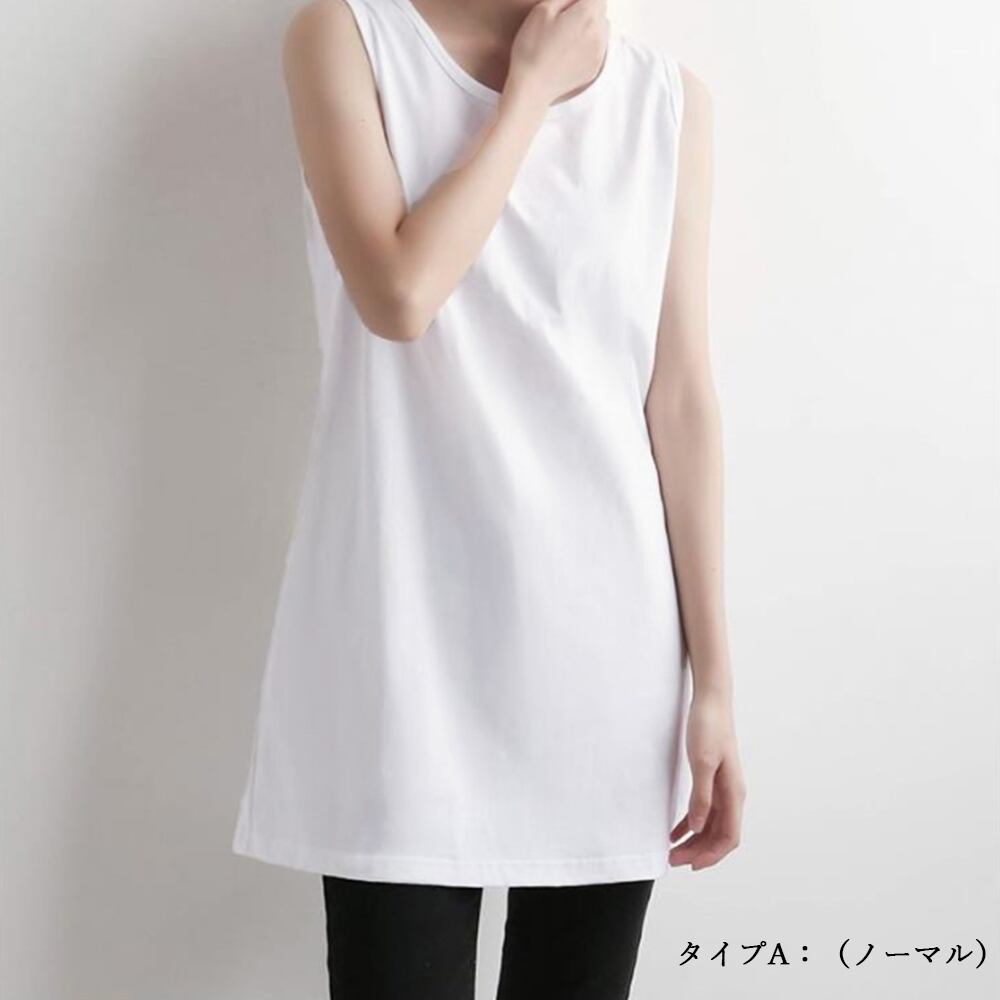 ノースリーブトップス レディース ラウンド裾 ゆったり シャツ 重ね着 チュニックカットソー