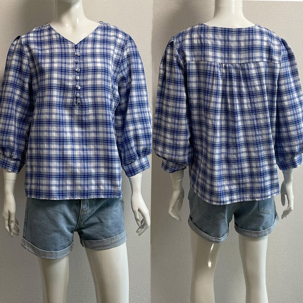 【日本倉庫即納】 7分袖 チェック 柄シャツブラウス夏