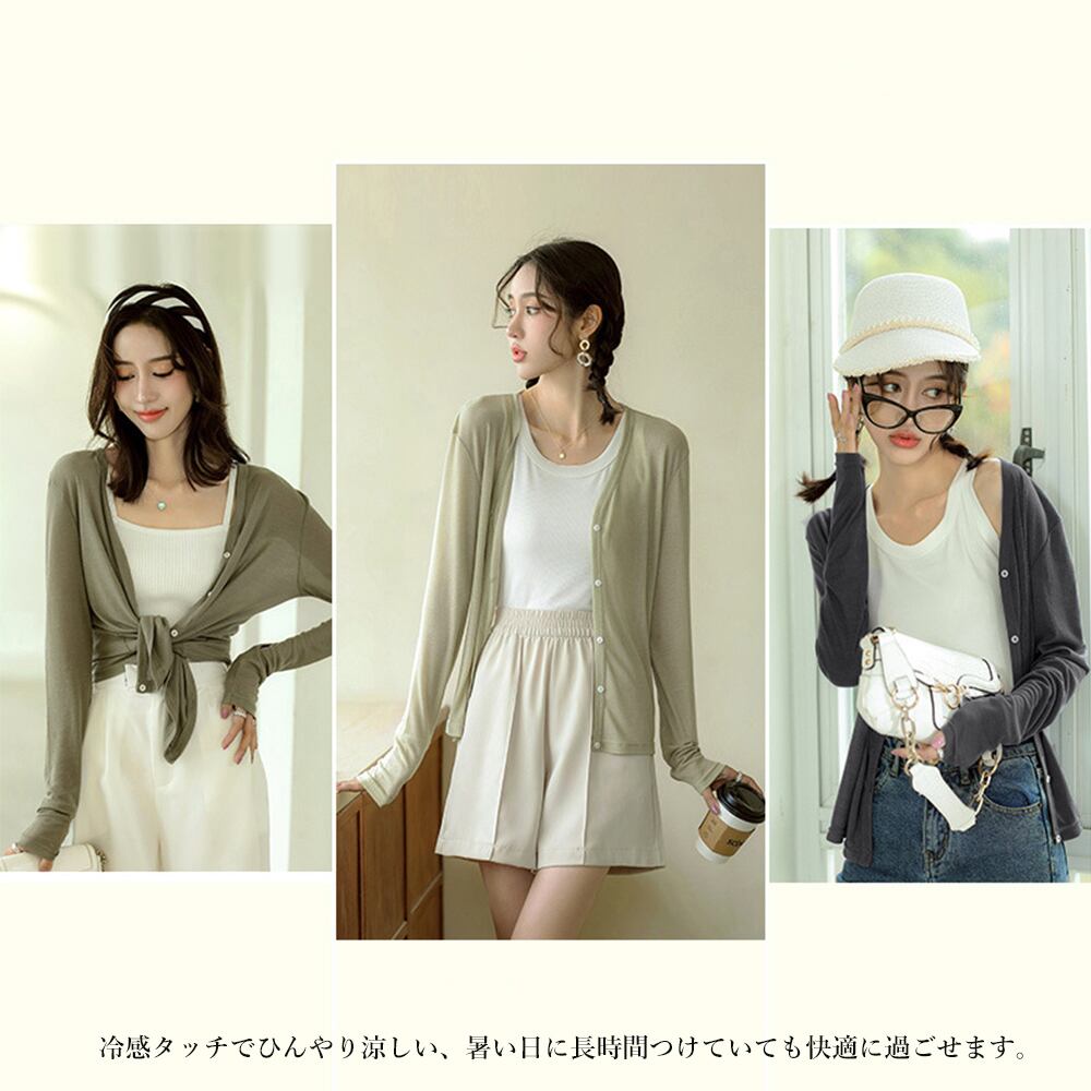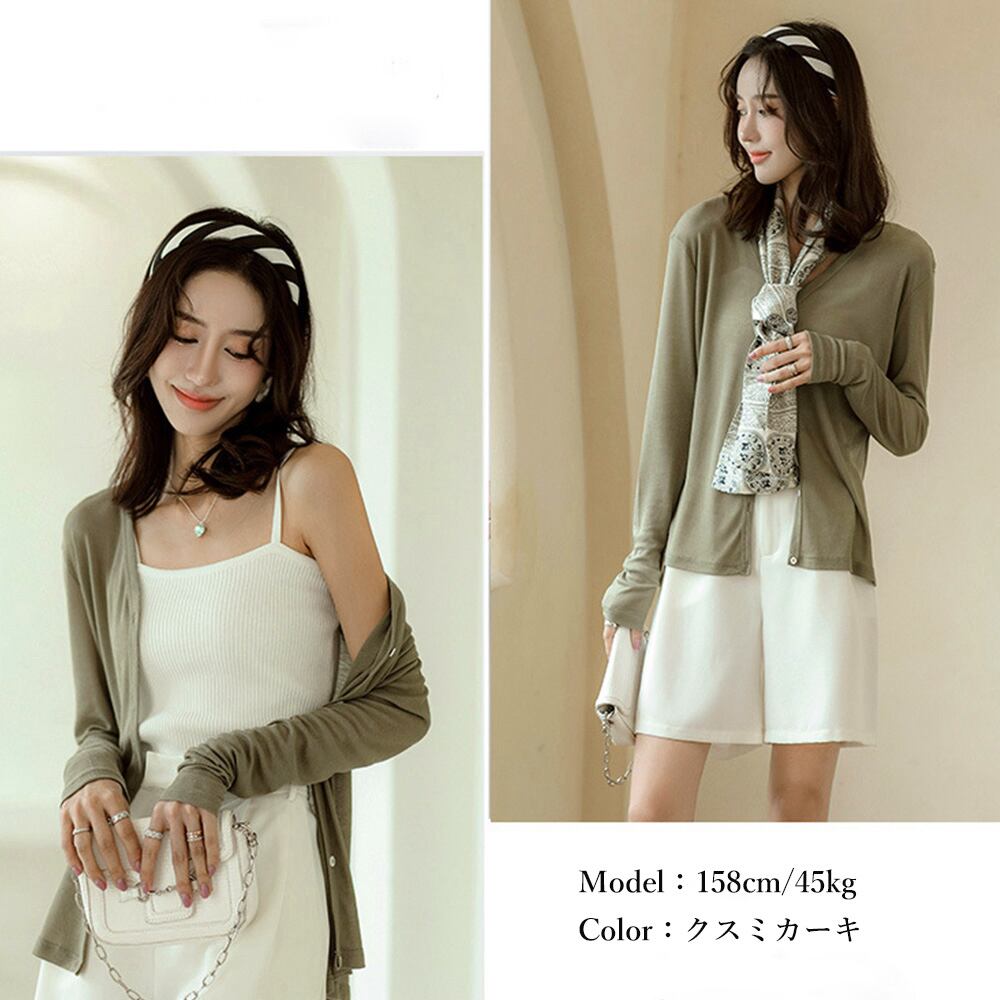 春夏 長袖カーディガン UVケア 紫外線対策 薄手 ニット トップス オフィスカジュアル冷え対策 通学通勤 羽織り 無地