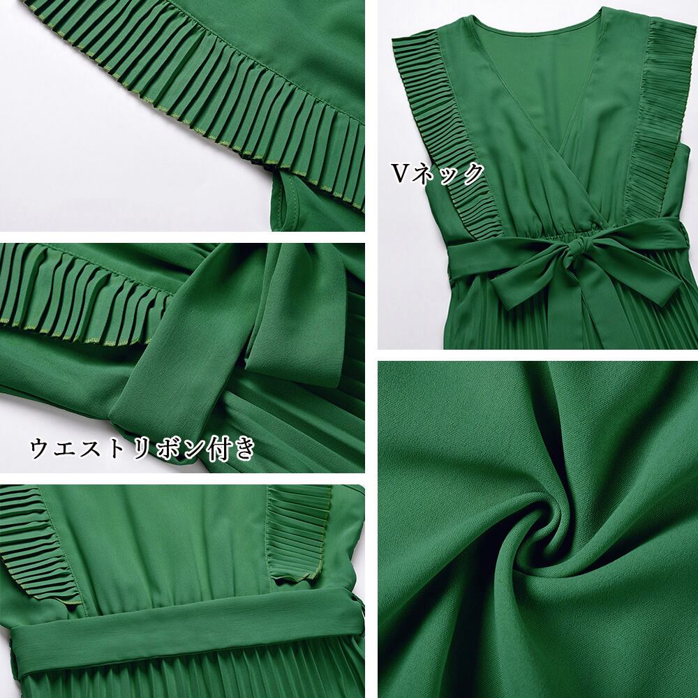 フレアスリーブ シフォンワンピ Vネック Aライン マキシワンピースドレス ウエストマーク 海リゾートワンピ 体型カバー