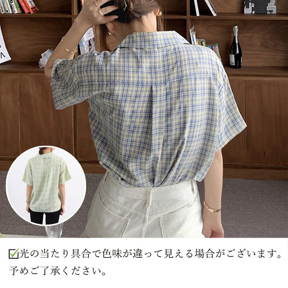 グレンチェック半袖 五分袖 大人カジュアル 柄シャツ 襟付きブラウス お洒落 韓国風 30代 40代 夏服 着やせ 薄手