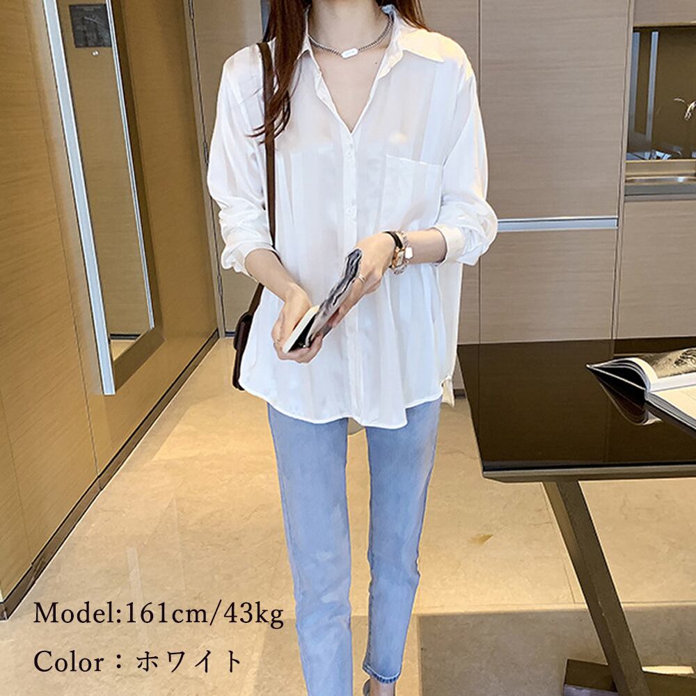 Vネックシャツ レディース オフィスカジュアル 体型カバー OL 羽織 ストライプ 前開きシャツ
